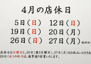 4月5日(日)4月12日(日)4月19日(日)4月20日(月)4月26日(日)...