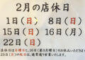 ※店休日は日曜日と、19日(第3月曜日)をお休みいただきます。